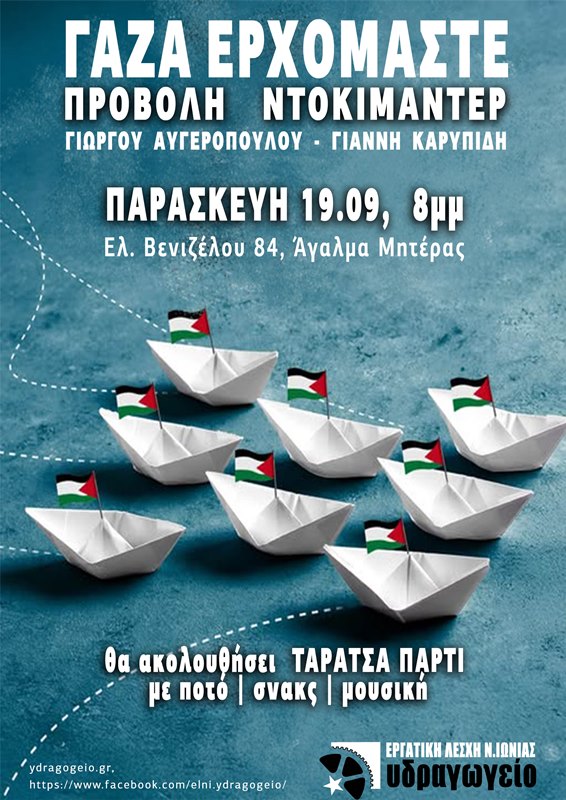 🎥 Γάζα, ερχόμαστε – Προβολή στη Λέσχη, Ελ. Βενιζέλου 84! 🌊✊